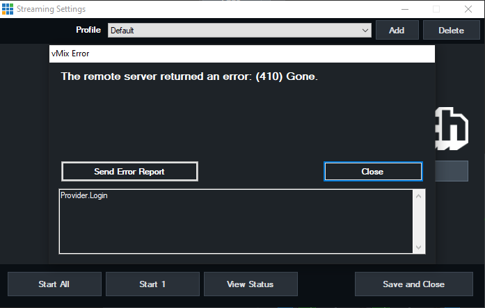 When trying to login to Twitch via the vMix Streaming Settings window, you may encounter the following error message in vMix 21 or earlier: